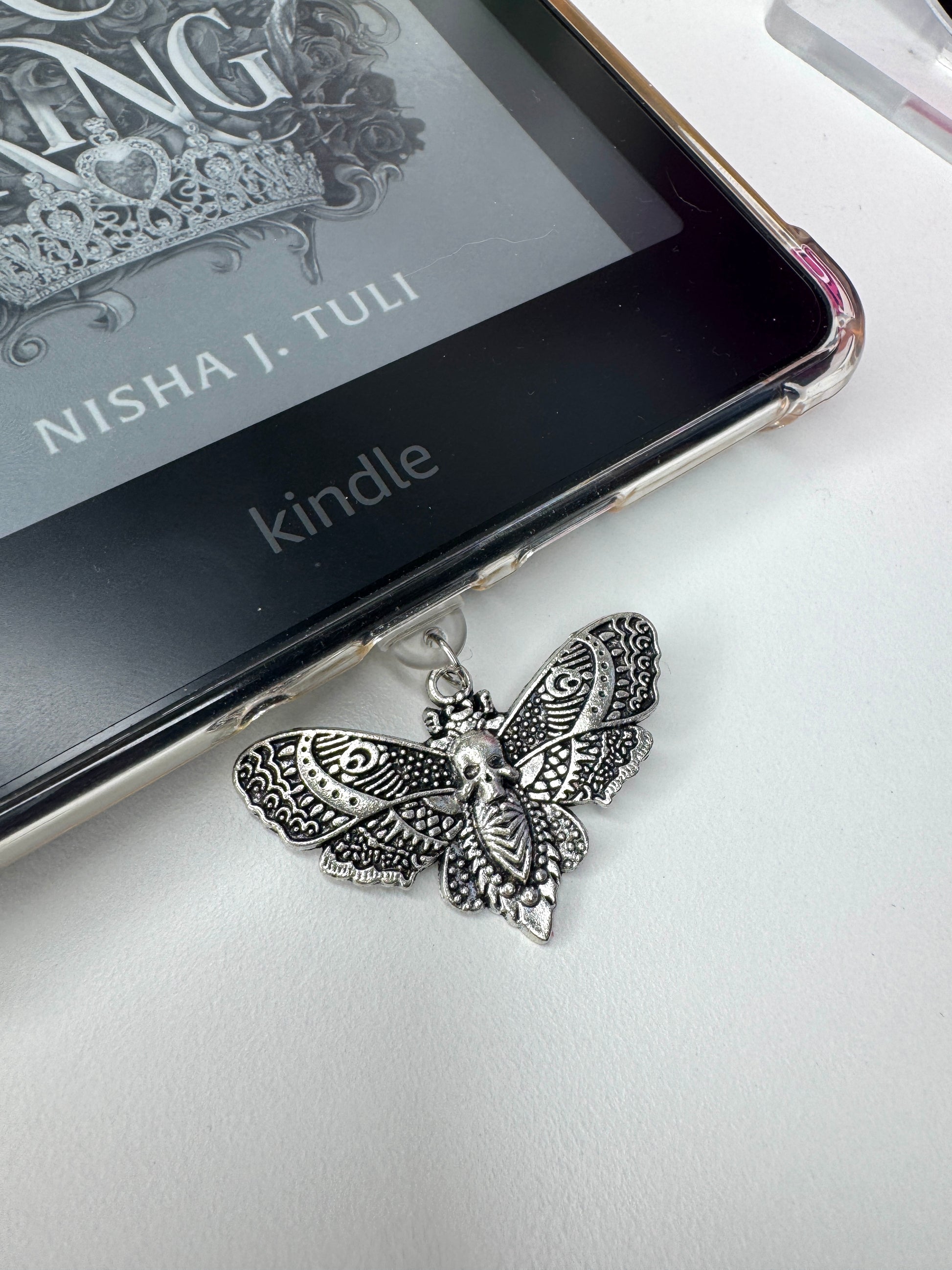 Death Moth Silver eReader Charm Dust Plug
