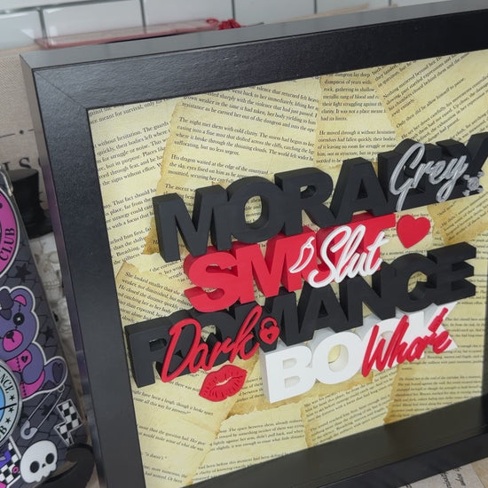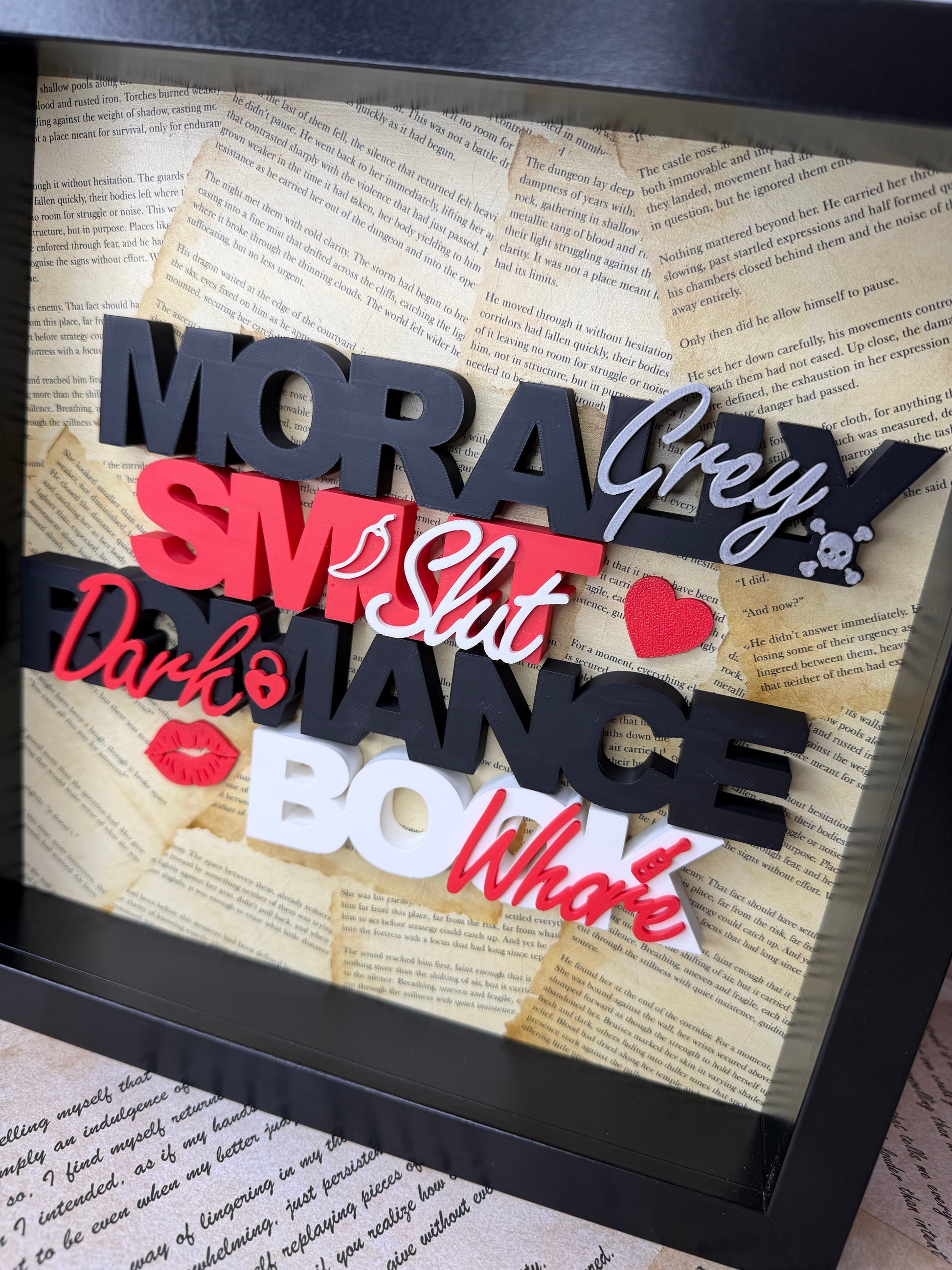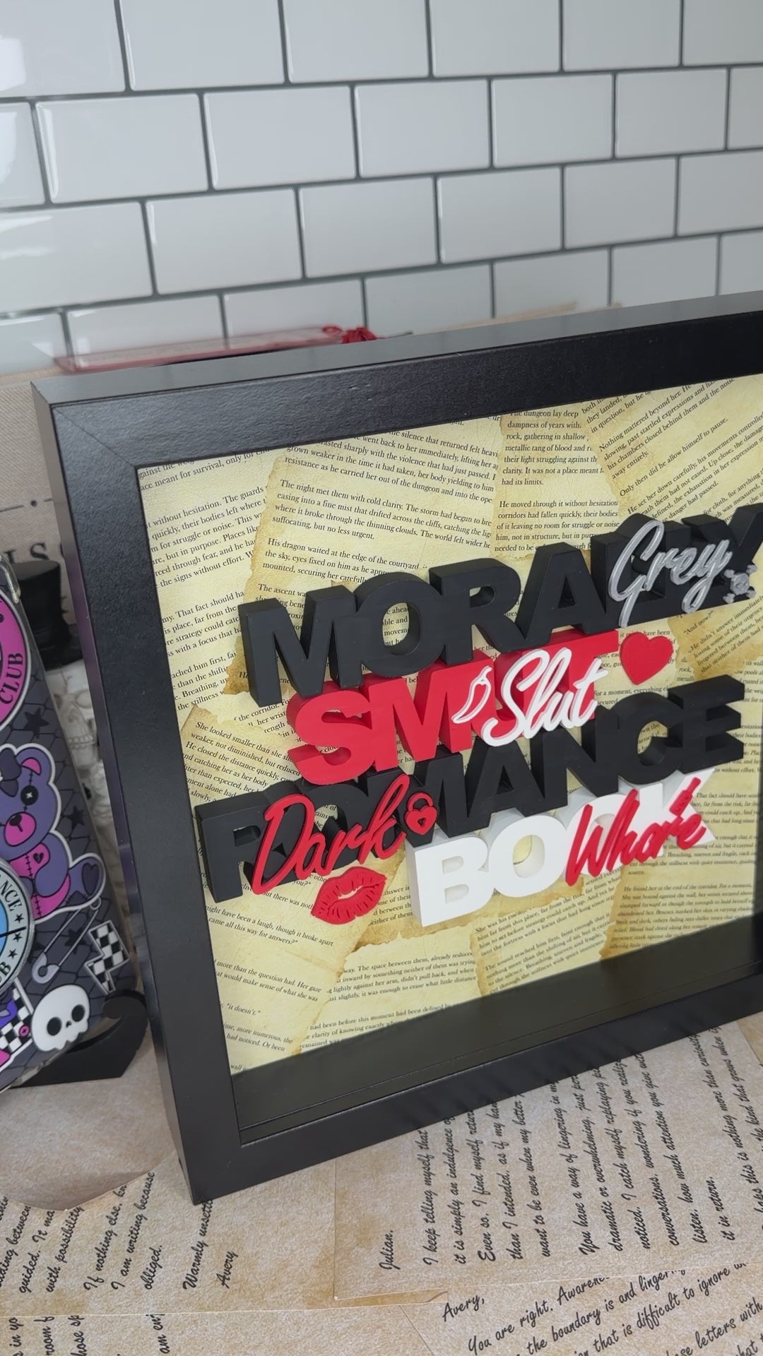 This bold layered decor piece is made for the romantasy addicts, morally grey man collectors, and proud members of the “just one more chapter” club. This statement piece is perfect for shelves, reading nooks, book carts, or anywhere that deserves a little extra sass.